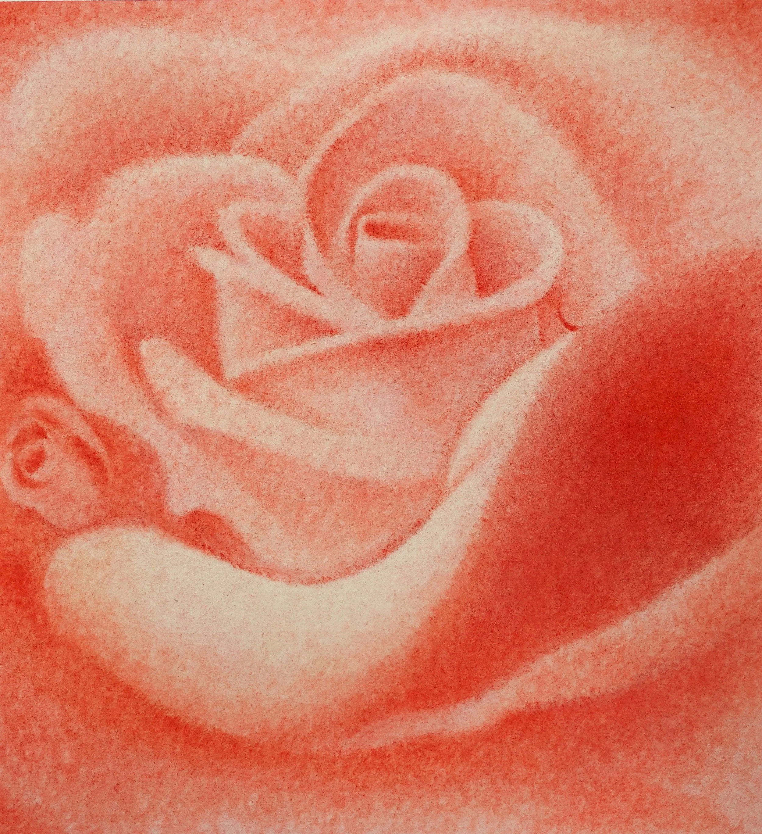 Enveloped in Rose Fragrance The serene and blissful moment of a woman immersed in the intoxicating scent of roses.